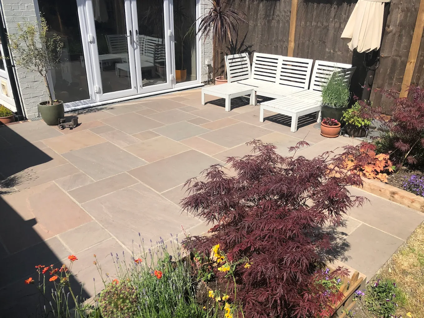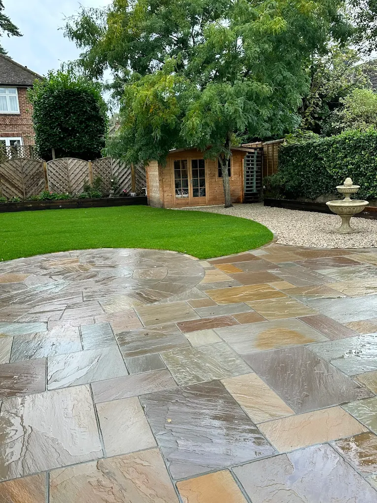 Our sandstone patios in Guildford bring warmth and natural character to any garden. Each slab has unique colour variations, giving your patio a timeless, rustic charm. We use high-quality sandstone that’s both durable and easy to maintain for long-lasting beauty.